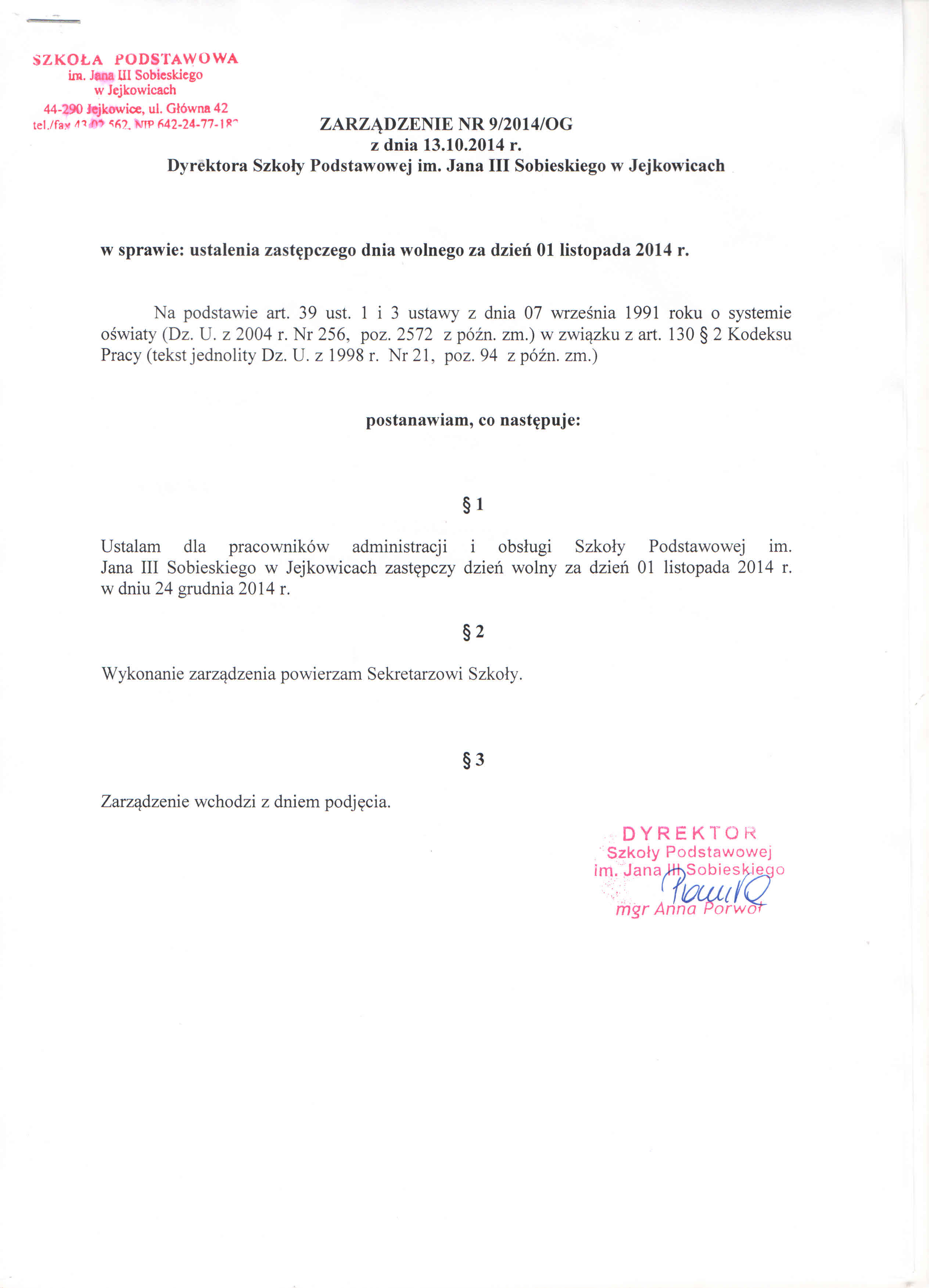 Agnieszka Zurek) - Dodanie załącznika [zarzadzenie.jpg] do dokumentu. (Dokument opublikowany)