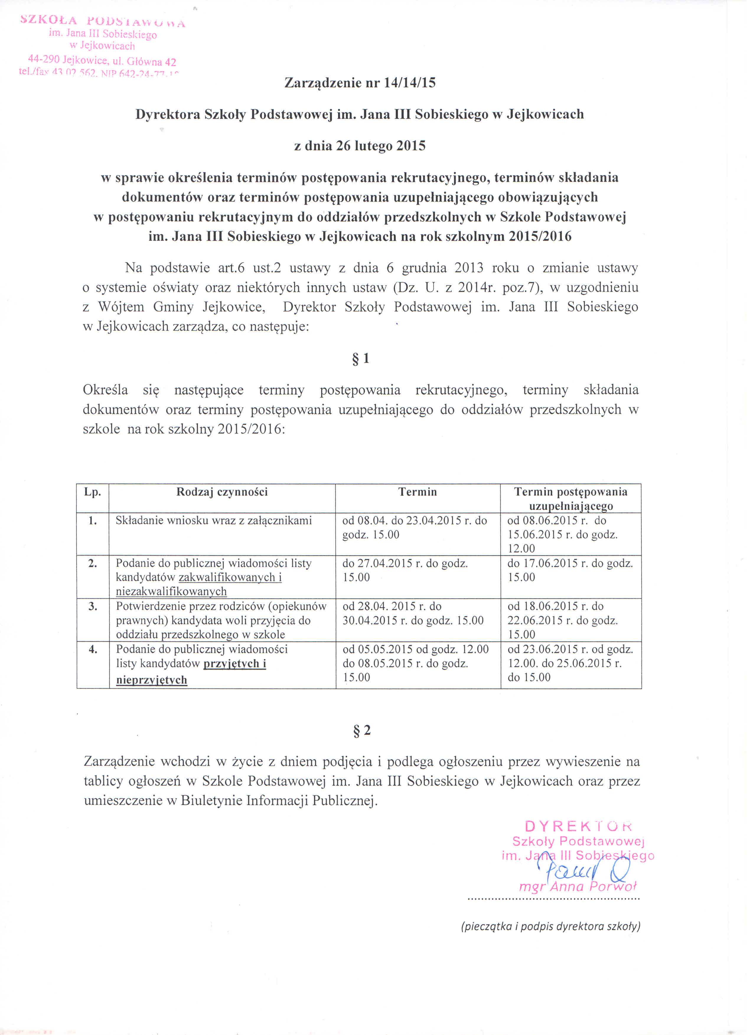 Agnieszka Zurek) - Dodanie załącznika [zarzadzenie_14.jpg] do dokumentu. (Dokument opublikowany)