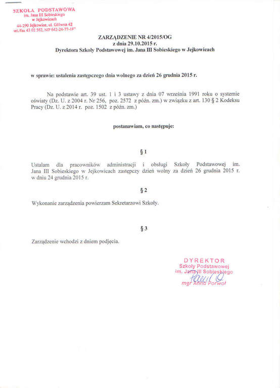 Agnieszka Zurek) - Dodanie zdjęcia [zarzadzenie_42015og.jpg] do dokumentu. (Dokument opublikowany)